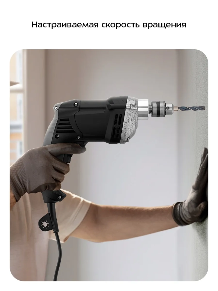 В патрон можно установить разные сверла (в комплект не входят). Диаметр зажимаемого сверла — до 13 мм.
