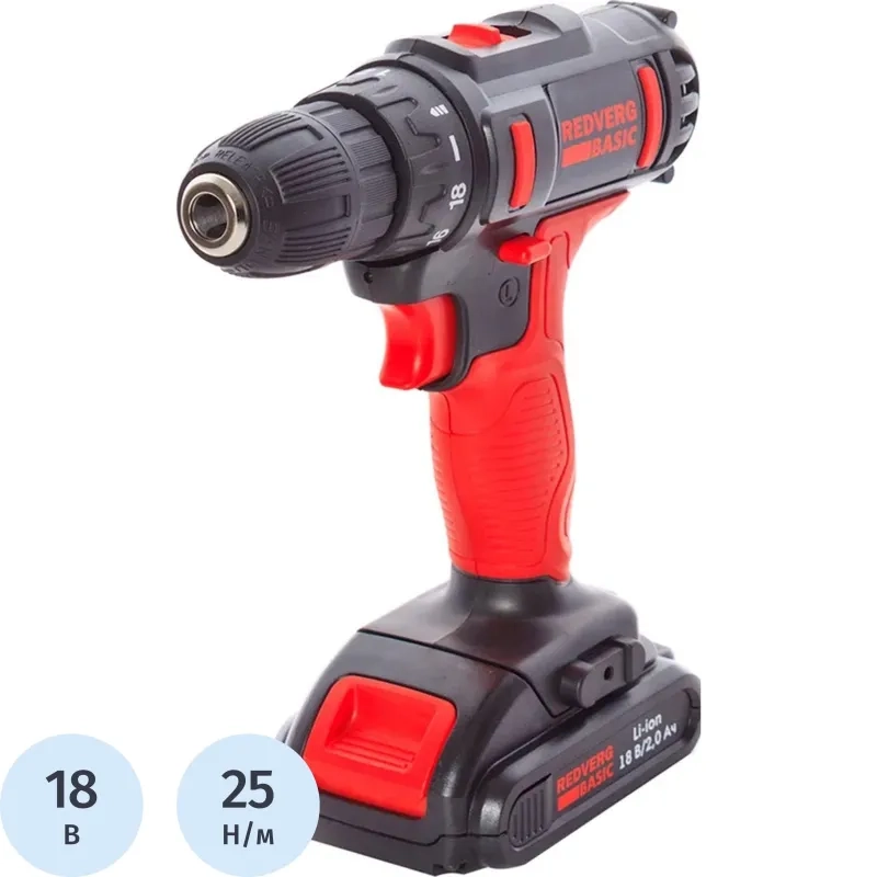 Дрель-шуруповерт акк. REDVERG Basic SD18LE/2-2 2 АКБ x Li-ion (18В, 2 Ач)