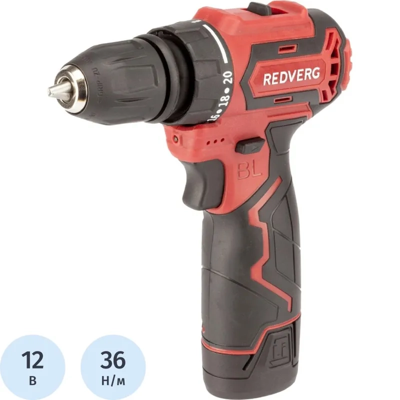 Дрель-шуруповерт акк. REDVERG RD-SD12BLR бесщ.2 АКБ x Li-ion (12В, 2 Ач)