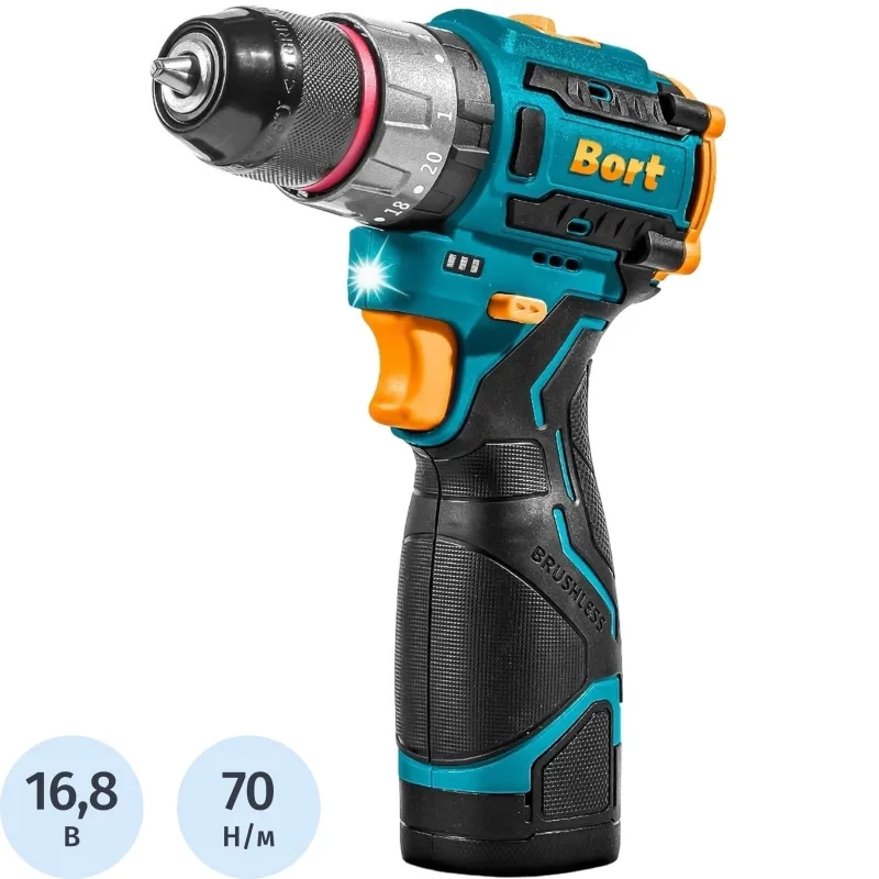 Дрель-шуруповерт аккумуляторная ударная Bort BAB-16U (2x2А.ч)