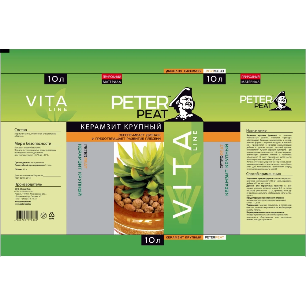 Дренаж Керамзит, фракция 10-20, линия Вита, 10 л (КРУПНЫЙ)