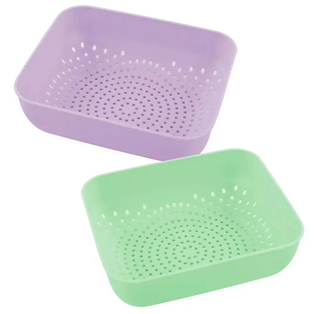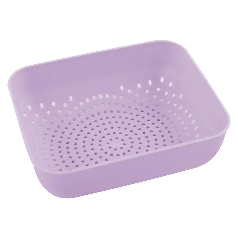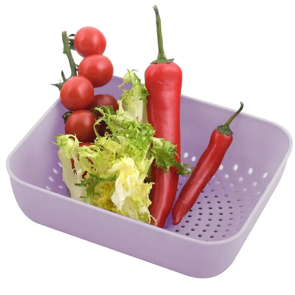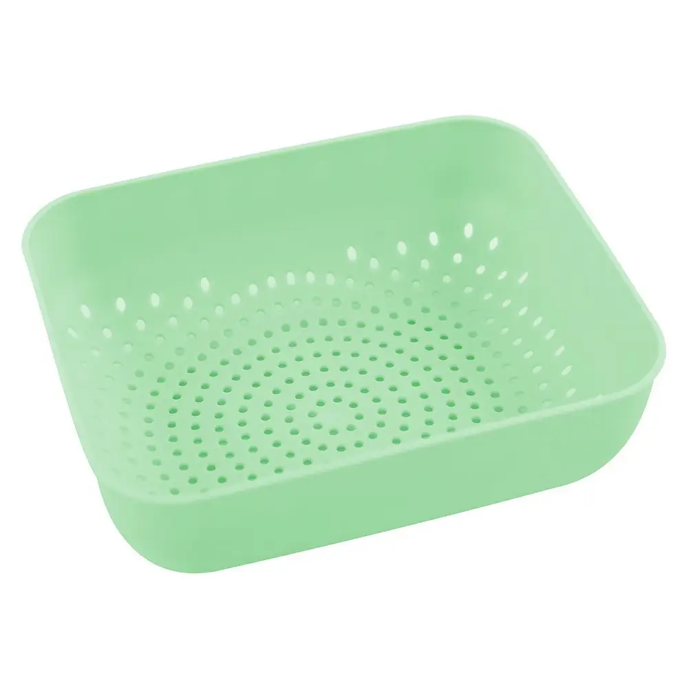 Дуршлаг прямоугольной формы — удобный и многофункциональный кухонный помощник. Изделие используется для промывания и сушки овощей, фруктов, сухофруктов, зелени, а также для слива макарон, вареного картофеля и т.п. Пригодится в квартире и на даче, занимает мало места и удобен в хранении. Прямоугольная форма позволяет рационально использовать пространство при использовании. Изготовлено из пластмассы (полипропилен). Размер: 19,5х16,5х6,5 см.