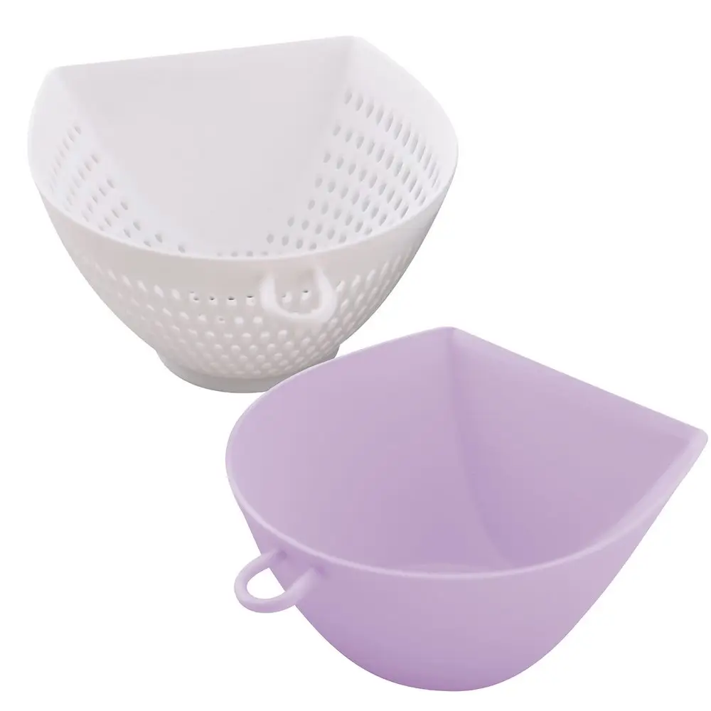 Дуршлаг с миской — удобное многофункциональное изделие, необходимое на любой кухне. Дуршлаг может использоваться для промывания фруктов, сухофруктов, овощей и зелени, а также для слива макаронных изделий, вареного картофеля и других продуктов. Миска подойдет для сушки — промойте продукты и поместите дуршлаг в емкость, чтобы лишняя вода не стекала на стол. Приспособление удобно для размораживания мяса и рыбы. Миска также может использоваться самостоятельно — в ней можно приготовить салат, подать фрукты и овощи на стол и т.п. Изделие удобно хранить в шкафу или на крючке, для этого предусмотрена специальная петелька. Изготовлено из пластмассы (полипропилен). Размеры: дуршлаг - 14х13,5х8 см; миска – 14х13,5х7 см, емкость 500 мл.