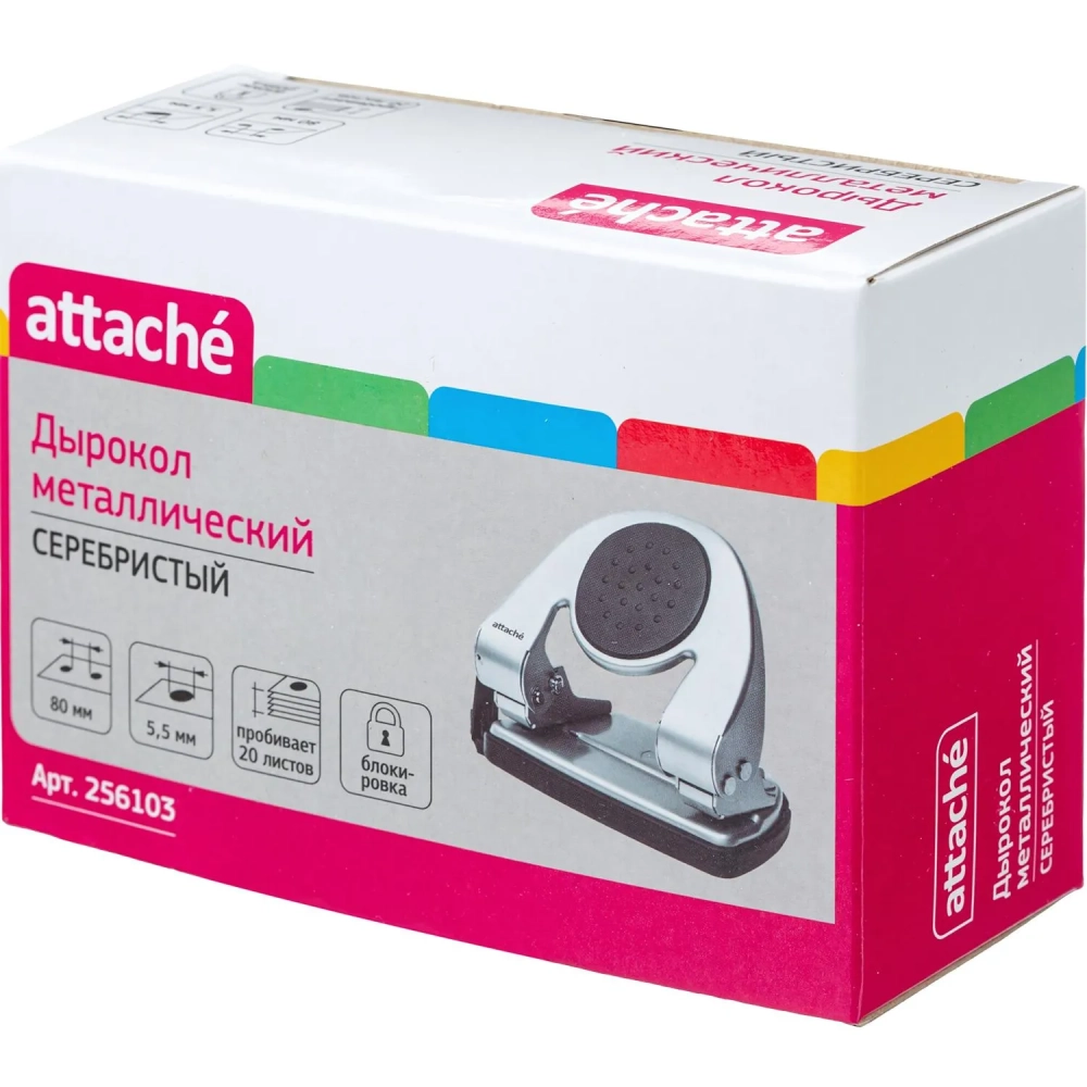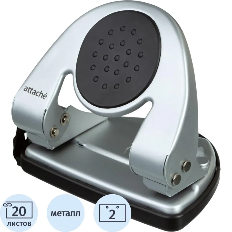 Дырокол ATTACHE 6720 до 20л., металл.,с лин.,с рез.вставкой,серебр.