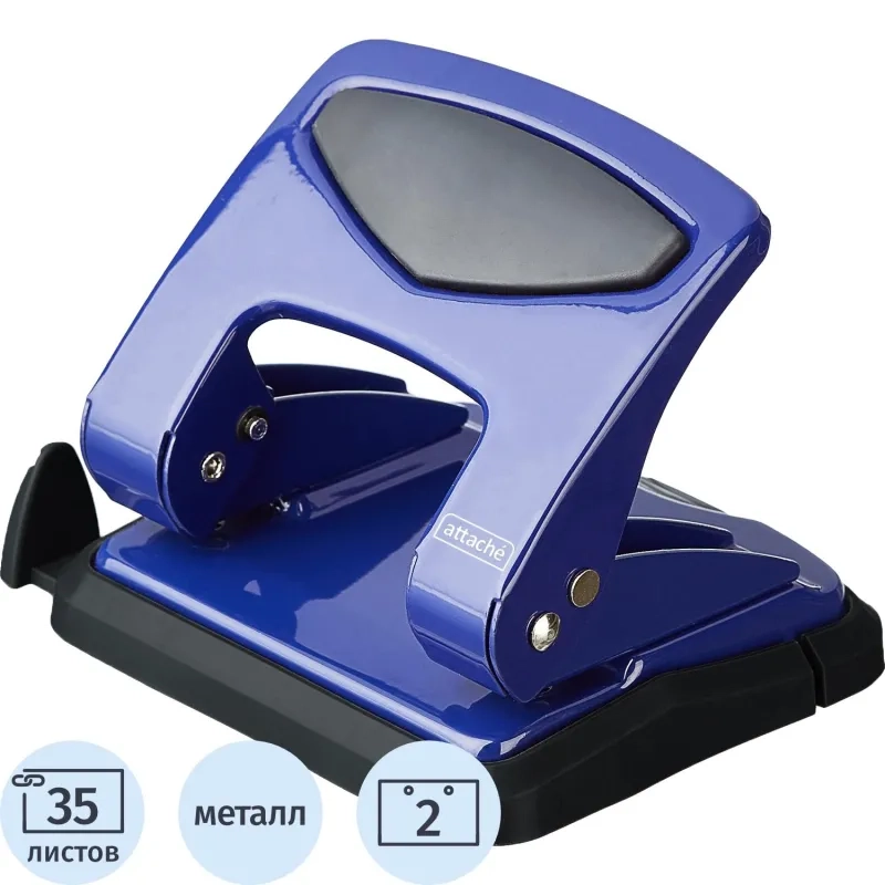 Дырокол Attache до 35 листов, с блокиратором, металлич., синий