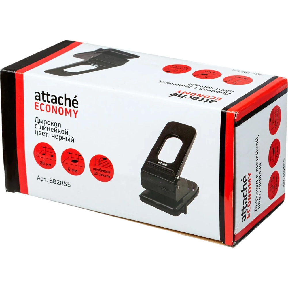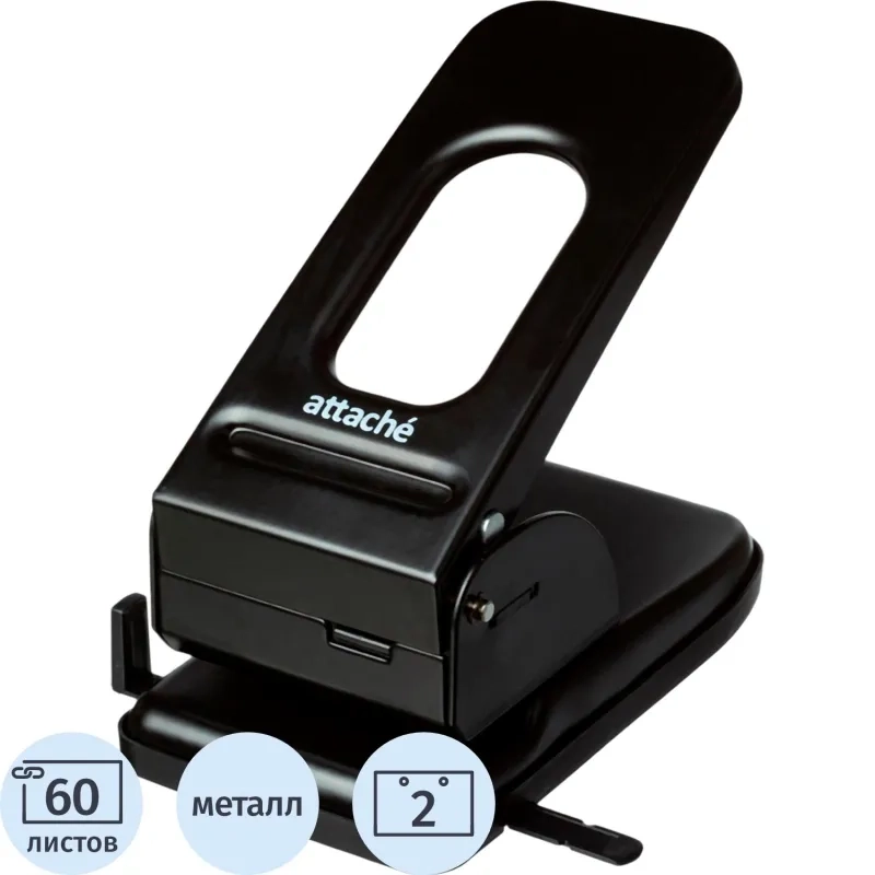 Дырокол Attache до 60листов, с линейкой, цвет черный