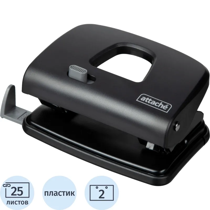 Дырокол Attache Perform до 25 листов, блокиратор,линейка,пластик, черный