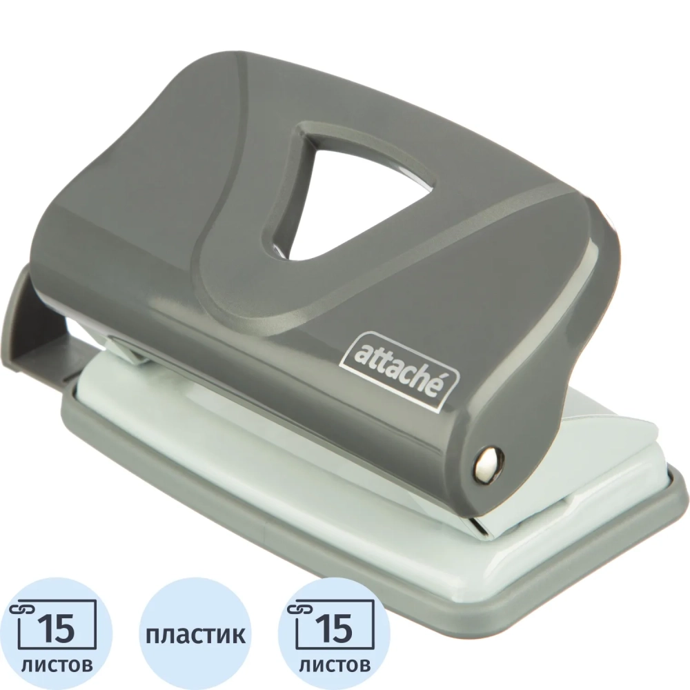 Дырокол Attache Smart до 15 листов, линейка, пластик, серый
