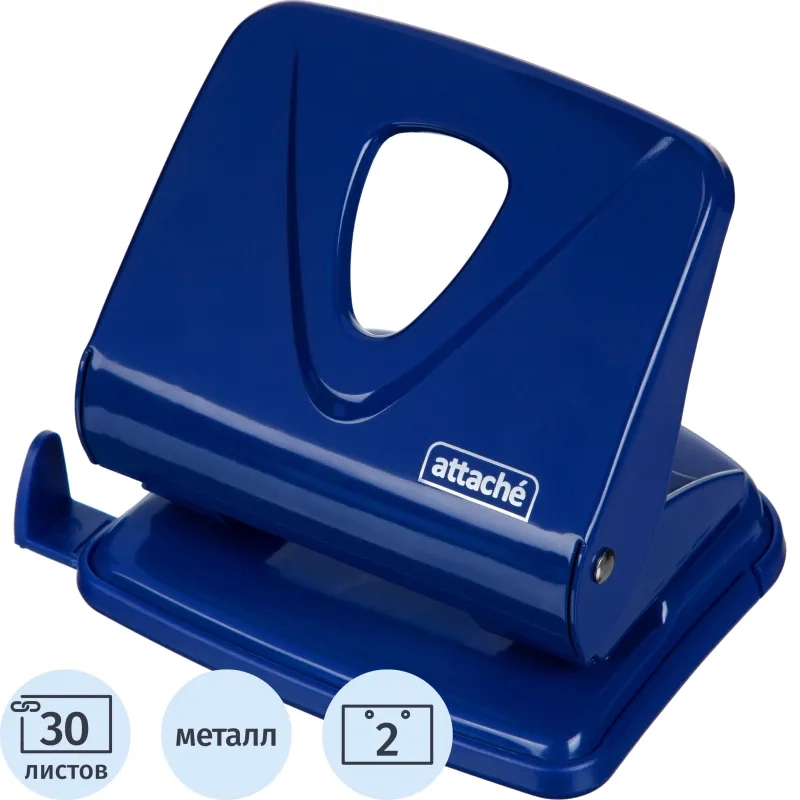 Дырокол Attache Symbol до 30 листов, линейка, металл, синий