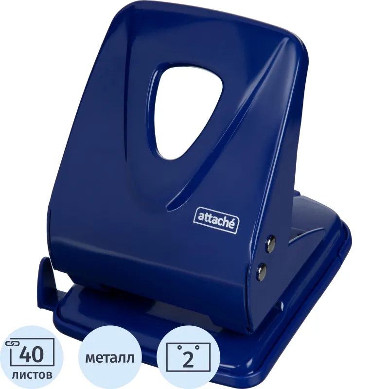Дырокол Attache Symbol до 40 листов, линейка, металл, синий