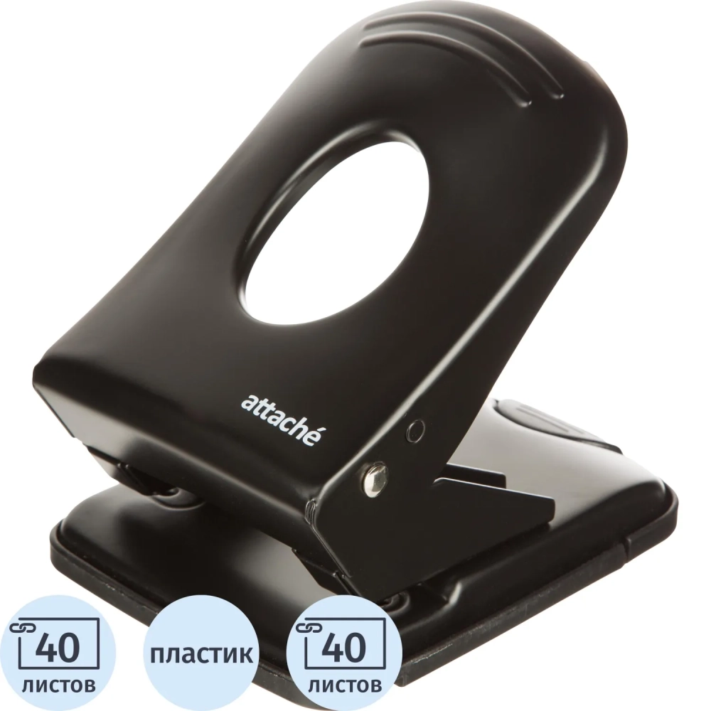 Дырокол металлический Attache до 40 листов, с линейкой, цвет черный