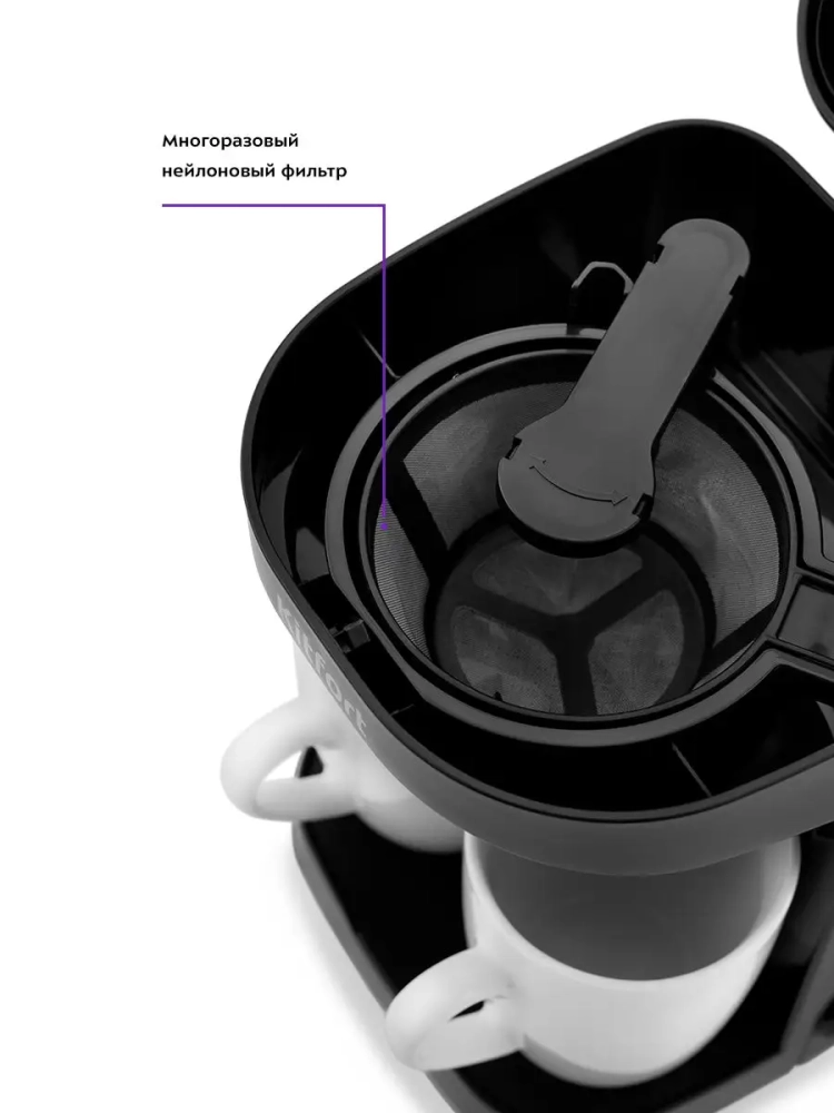 Капельная кофеварка Kitfort КТ-764 — это идеальное решение для любителей ароматного кофе. Эта электрическая кофеварка позволяет быстро и легко приготовить ваш любимый напиток. В процессе варки вода нагревается до температуры 80-90 °С, после чего медленно проходит через фильтр с молотым кофе, обеспечивая насыщенный вкус и аромат. Электрокофеварка оснащена резервуаром объемом 250 мл, что позволяет приготовить две кружки кофе за один раз — отличный выбор для небольшой кухни или офиса. Компактные размеры делают её незаменимой на кухне с ограниченным пространством, а легкость конструкции обеспечивает удобство в использовании и хранении. Управление кофеваркой осуществляется всего одной кнопкой: включение и выключение не требует дополнительных усилий. В комплекте идут две кружки, что делает её ещё более практичной для использования в домашних условиях или на работе. Кофеварка Китфорт отличается стильным дизайном и высокой функциональностью, идеально вписываясь в любой кухонный интерьер. Она станет отличным дополнением к вашей кухне благодаря своей компактности и простоте использования. Kitfort КТ-764 — это не просто прибор для приготовления кофе; это ваш надежный помощник на каждый день!
