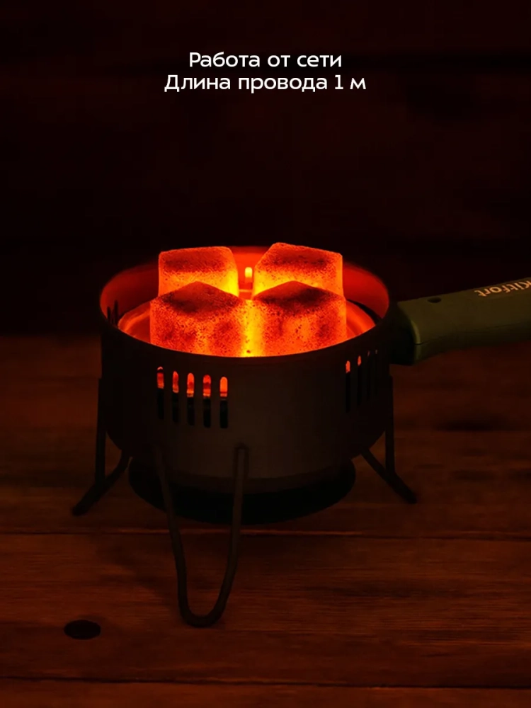 Электрическая плита для розжига углей для кальяна Kitfort КТ-5423 поможет быстро и удобно разогреть угли для кальяна. Электрическая плита для розжига углей убережет вашу кухонную плиту от повреждений и загрязнения пеплом. Время разогрева углей составляет 13–15 минут. Угли укладываются в специальную корзину для углей.