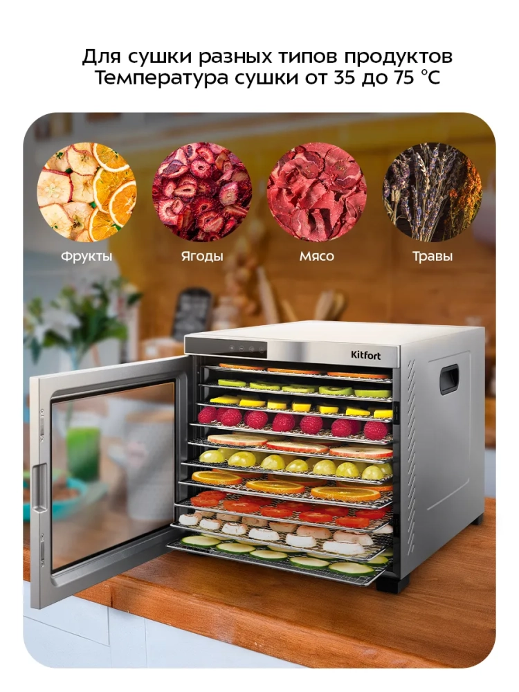Электрическая сушилка для овощей и фруктов КТ-1910