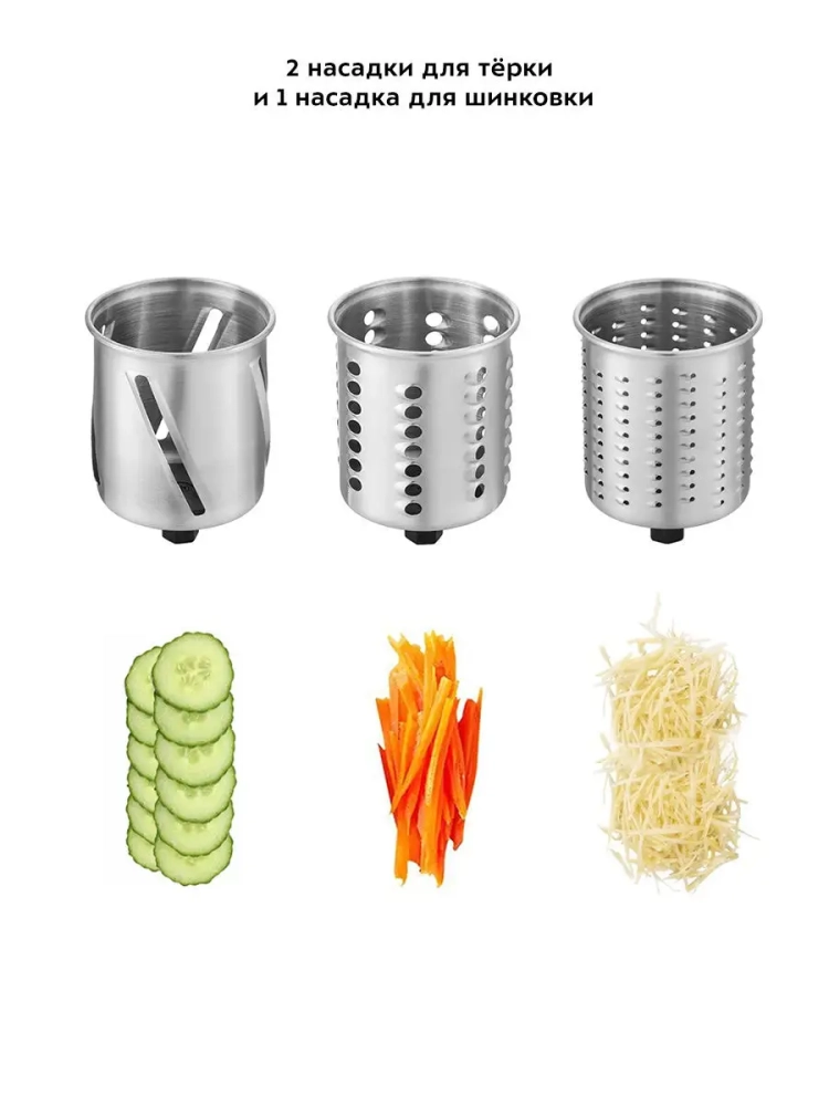 Электротерка Kitfort оснащена несколькими насадками, которые позволяют выполнять разнообразные задачи: шинковка, нарезка и измельчение. Эти кухонные приборы идеально подходят для приготовления салатов, гарниров и других блюд из овощей. Электрическая терка обеспечивает равномерное измельчение, благодаря чему ваши блюда всегда будут выглядеть аппетитно и профессионально.