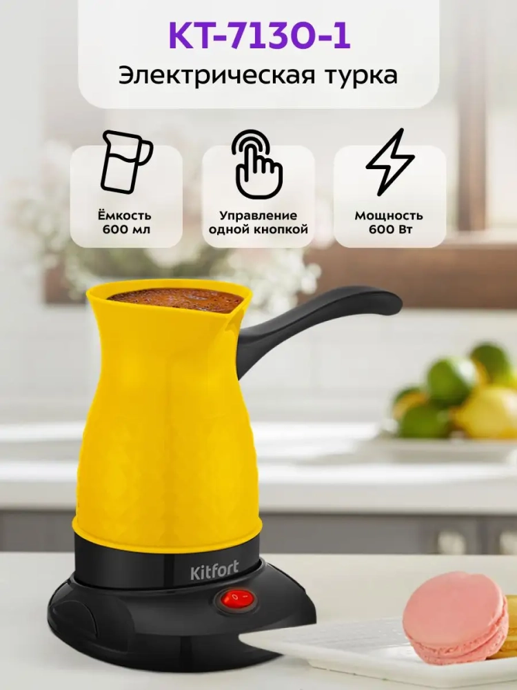 Электрическая кофеварка Kitfort позволяет варить кофе в турке с минимальными усилиями. Просто добавьте молотый кофе и воду, и через несколько минут вы сможете насладиться чашкой ароматного напитка. Турецкие традиции приготовления кофе теперь доступны в каждом доме благодаря электротурке Kitfort.