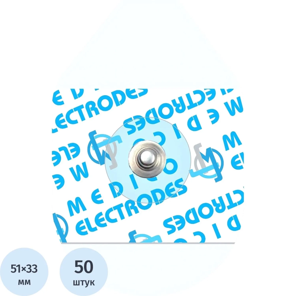 Электроды для ЭКГ однораз. 51х33 мм, тверд.гель, Medico MSGLT-09, 50 шт