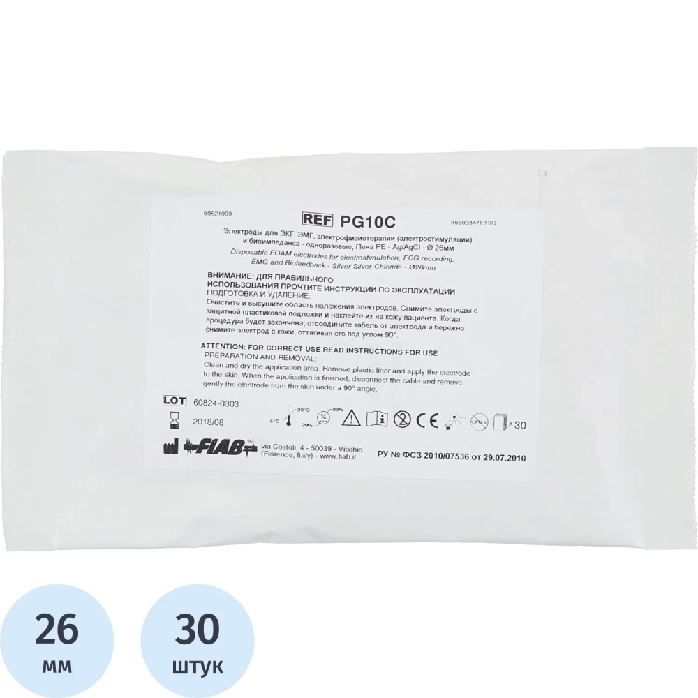 Электроды для ЭКГ однораз. D 26 пена, тв.гель, детск., PG10S/RU26, 30шт/уп
