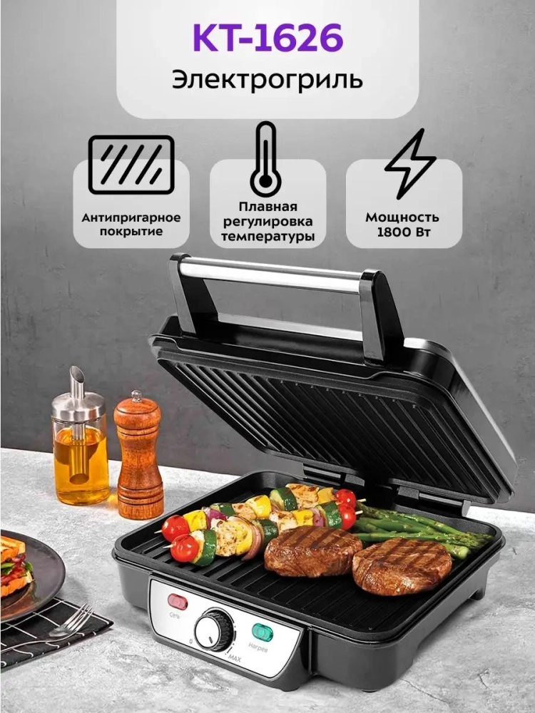 Электрогриль 1800Вт гриль электрический КТ-1626