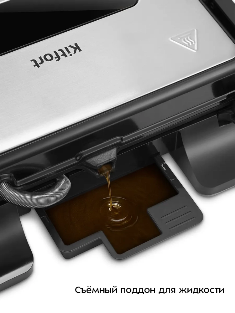 Данная модель оснащена поддоном для слива жира и сока, которые выделяются в процессе приготовления продуктов.