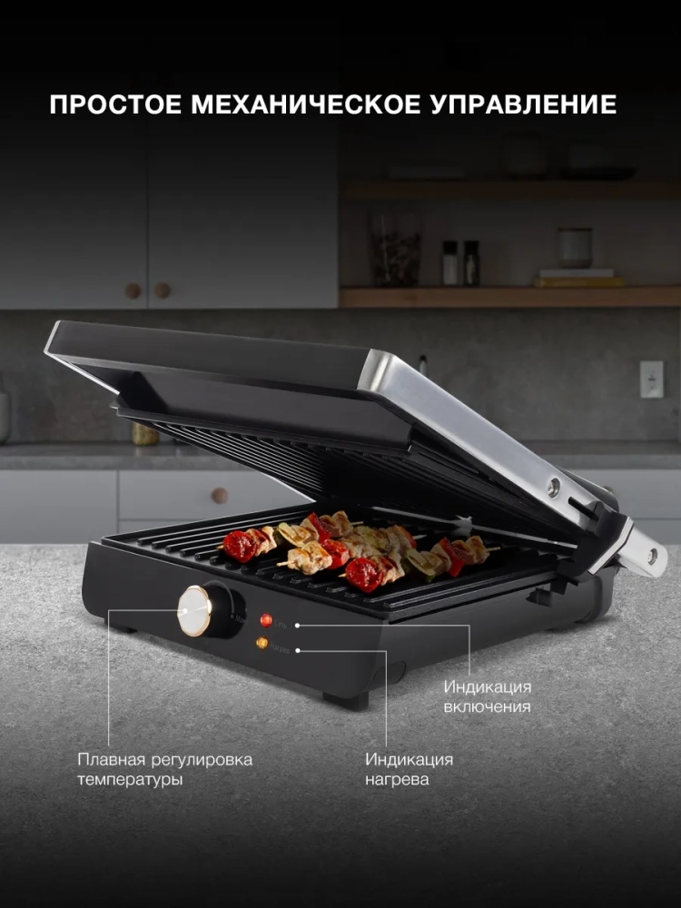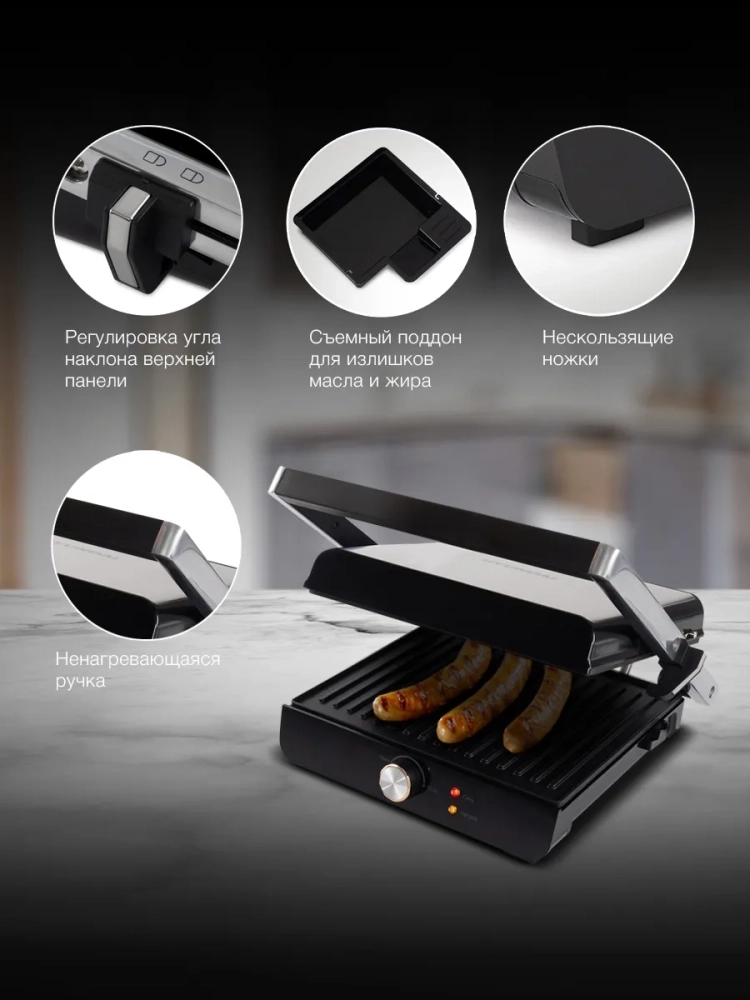 С помощью электрогриля можно приготовить мясо, рыбу, бутерброды, сэндвичи, тосты, овощи и многое другое. Ребристая поверхность и высокая температура панелей способствуют быстрому приготовлению и проявлению характерного «полосатого» рисунка на продуктах.