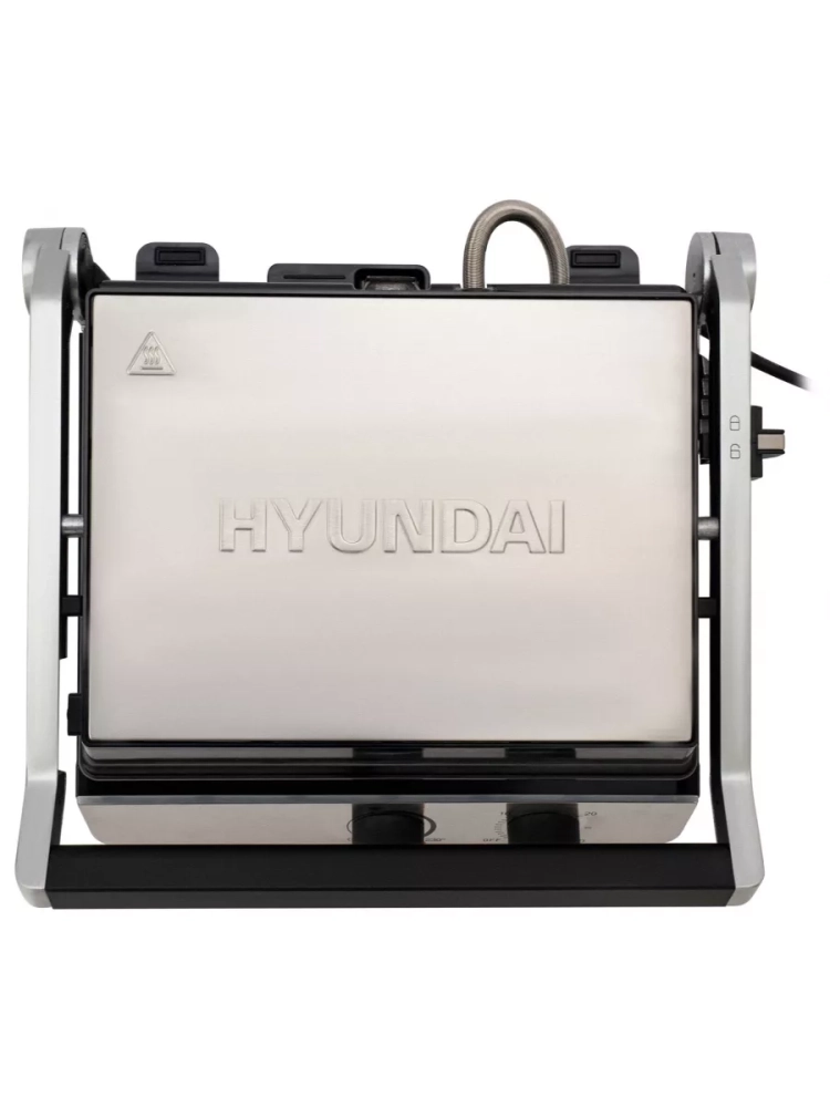 Электрогриль Hyundai HYG-5047 серебристый/черный, мощность 2200Вт, нагревательный элемент: ТЭН. Верхняя крышка имеет «плавающий» фиксатор и адаптирует свое положение под любой продукт с максимальным касанием к панели нагрева. Регулировка температуры позволит подобрать оптимальную для каждого типа продуктов, а таймер проконтролировать процесс степени прожарки/обжарки.