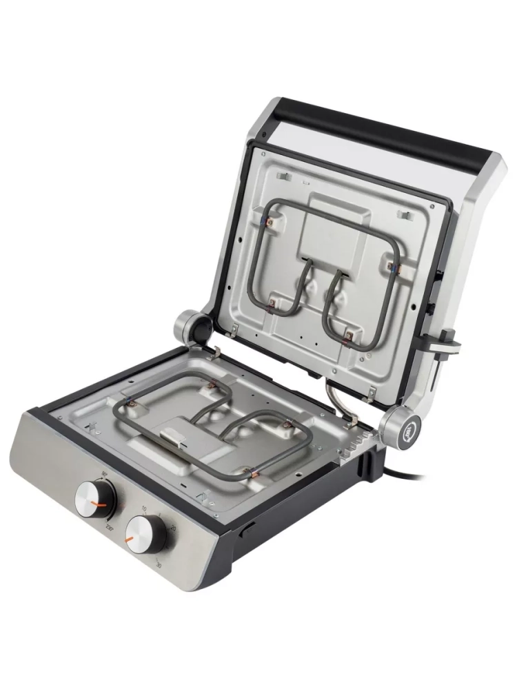 Яркая LED индикация сигнализирует о разогреве и готовности к работе. С помощью электрогриля можно приготовить мясо, рыбу, бутерброды, сэндвичи, тосты, овощи и многое другое. Ребристая поверхность и высокая температура панелей способствуют быстрому приготовлению и проявлению характерного «полосатого» рисунка на продуктах. Панели имеют антипригарное покрытие с двух сторон, их можно мыть в посудомоечной машине при температуре не выше 60°С.