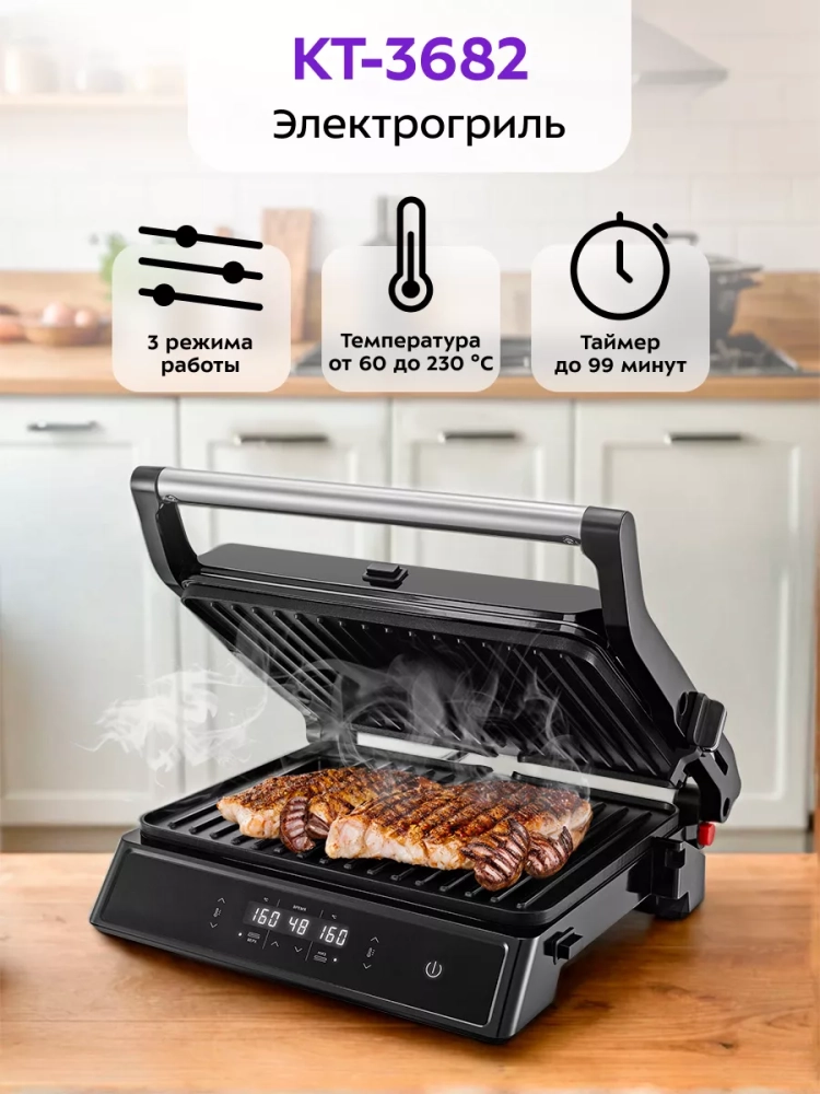 Электрогриль КТ-3682 гриль электрический для дома - 2000 Вт