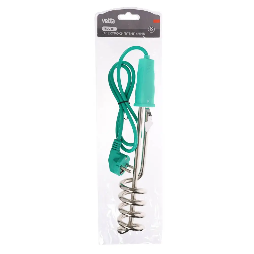 Электрокипятильник 1500Вт тм VETTA, 250В, шнур 90см, погружная часть 20см
