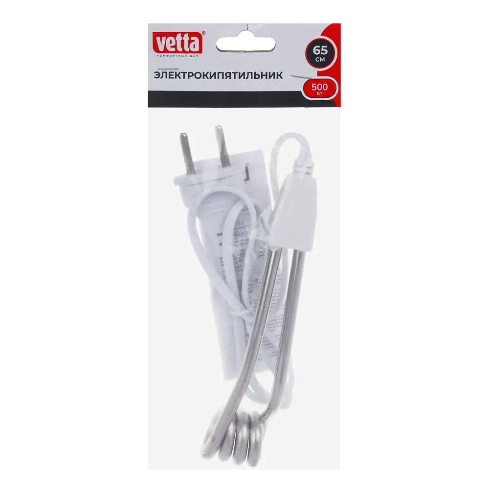 Электрокипятильник 500Вт тм VETTA, 250В, шнур 65см, погружная часть 10см