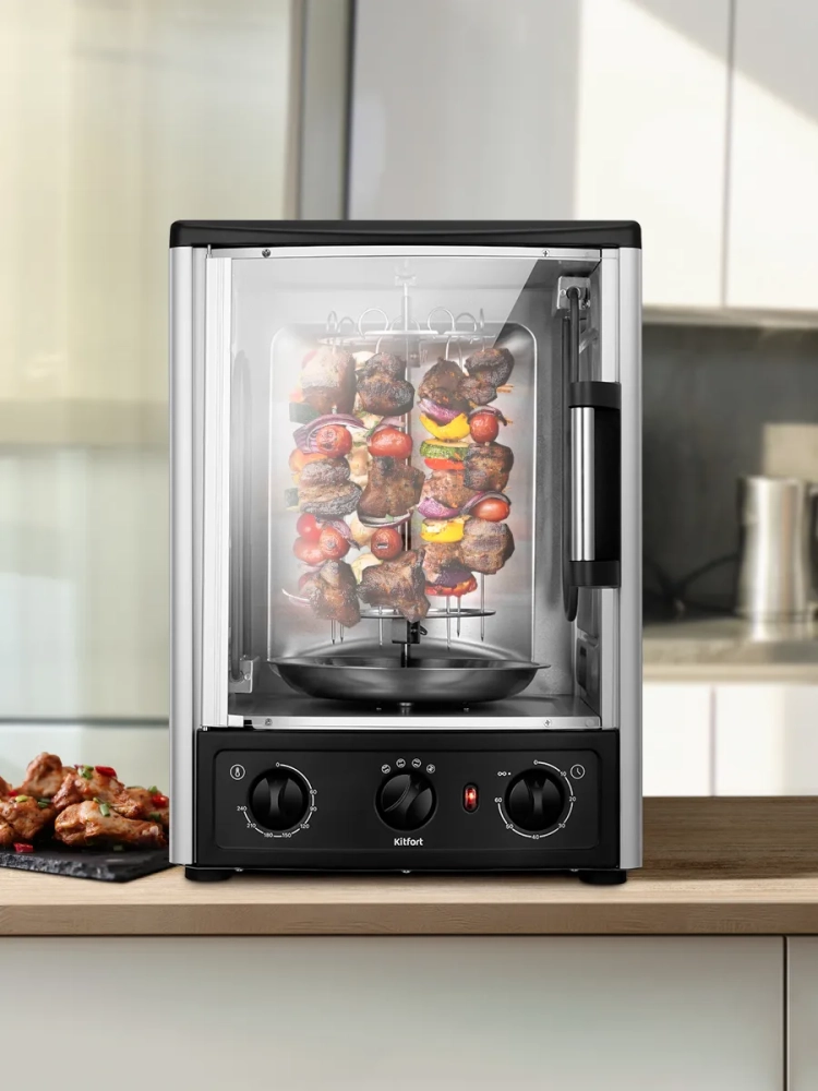 Электрошашлычница — это не просто техника, это ваш личный помощник для приготовления кулинарных шедевров. Она станет центром внимания на любой кухне, превращая процесс готовки в настоящее удовольствие. Выбирайте качество и надежность, выбирайте Kitfort.