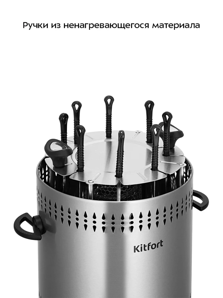 Электрошашлычница Kitfort КТ-1412 позволит приготовить шашлык из мяса, рыбы или овощей, а также сардельки, сосиски, картофель и другие блюда на шампурах.