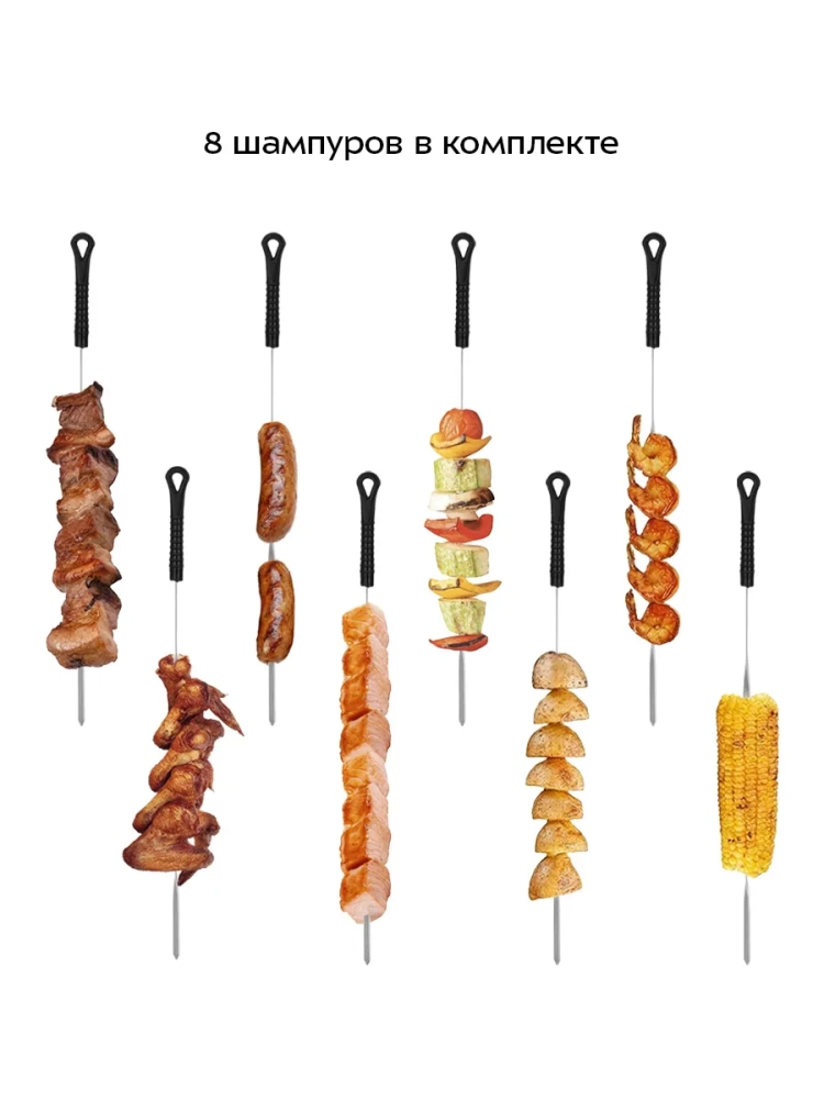 Размер устройства с установленными шампурами: 316 х 250 х 420 мм.
