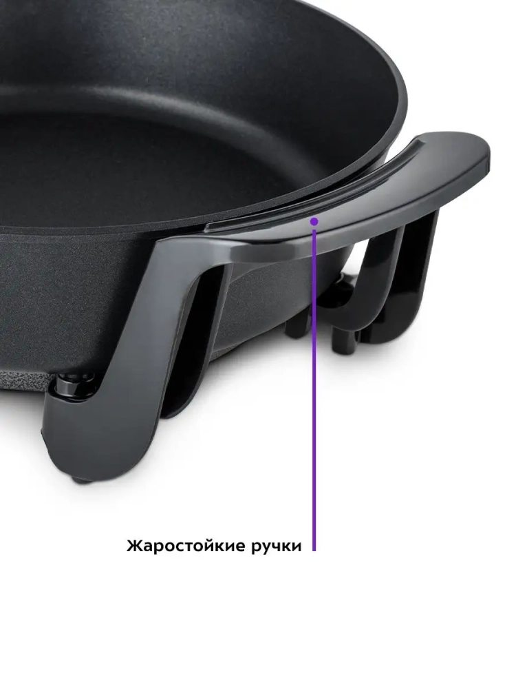 Электрическая сковорода оснащена терморегулятором, позволяющим точно устанавливать температуру приготовления, что делает её идеальной для использования дома. Жаропрочные ручки обеспечивают безопасность при эксплуатации, предотвращая риск ожогов. Крышка из жаропрочного стекла позволяет контролировать процесс готовки, не открывая сковороду, что сохраняет тепло и аромат блюд.