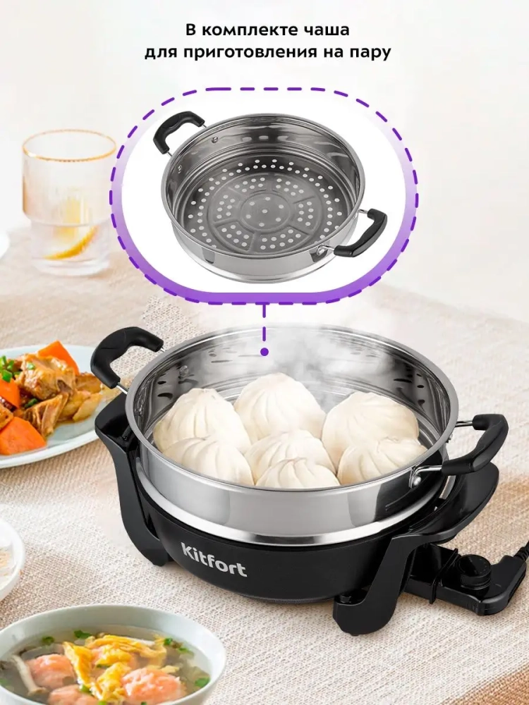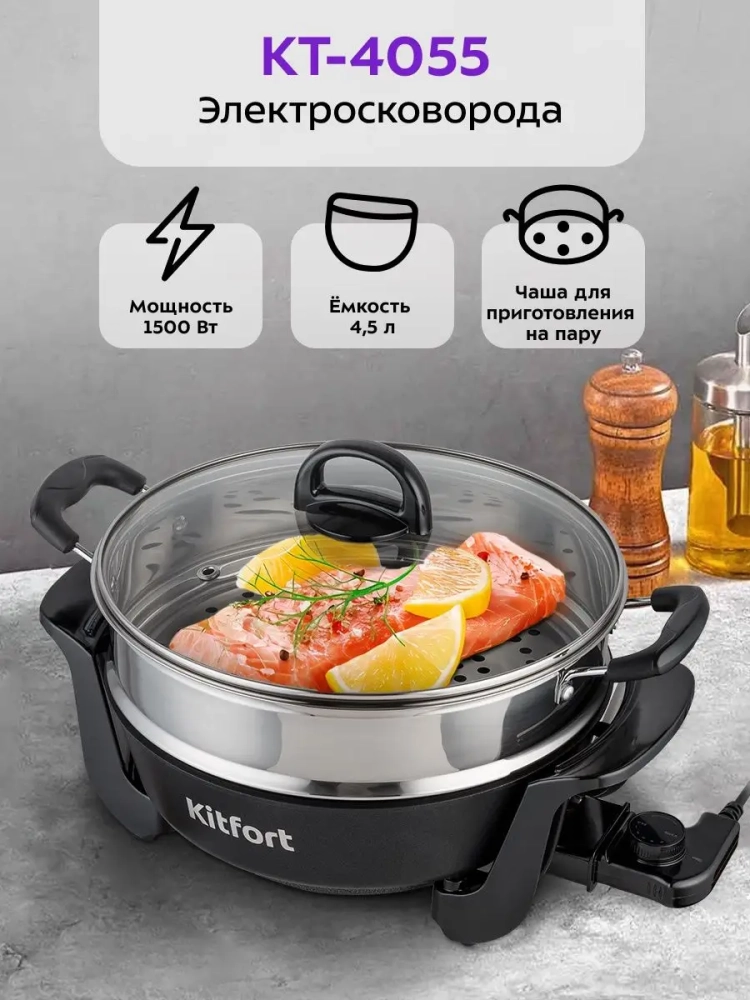 Электросковорода КТ-4055 — это не просто кухонный прибор, а настоящий помощник в приготовлении пищи. Она может использоваться как электрокастрюля или даже как мини-печь для выпечки. Благодаря своей многофункциональности, она заменяет собой несколько кухонных приборов, таких как духовка и пароварка, что экономит место и время на кухне.