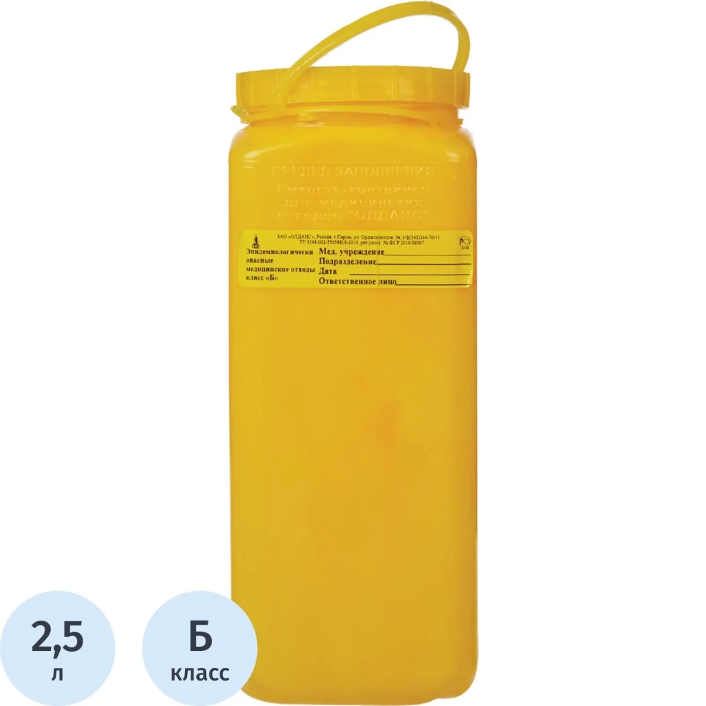 Емкость-контейнер д/сбора ост.инстр.с иглосъем.Б Жел.2,5л.ОЛДАНС