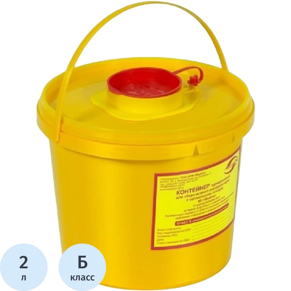 Емкость-контейнер д/сбора ост.инстр.с иглосъем.Б Жел.2л.80шт/уп.,Медком