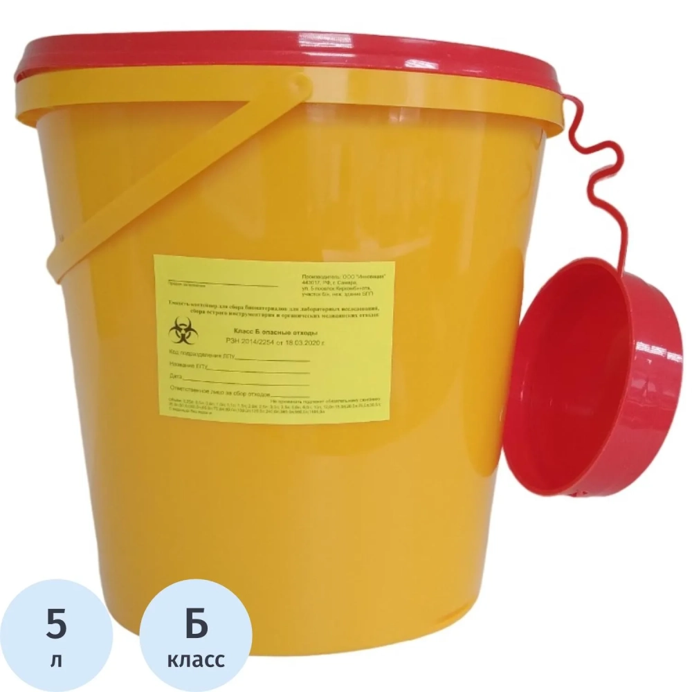 Емкость-контейнер для сбора ост инст.с иглос.Б Желт.квадр.5л, 50шт/уп.,СЗПИ