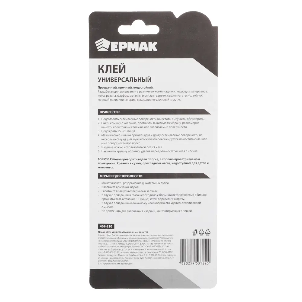 ЕРМАК Клей универсальный, 15мл, блистер