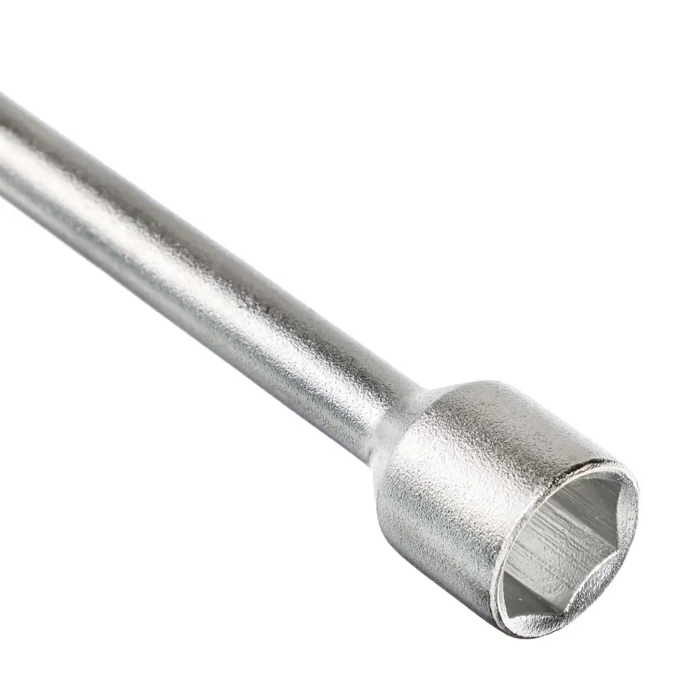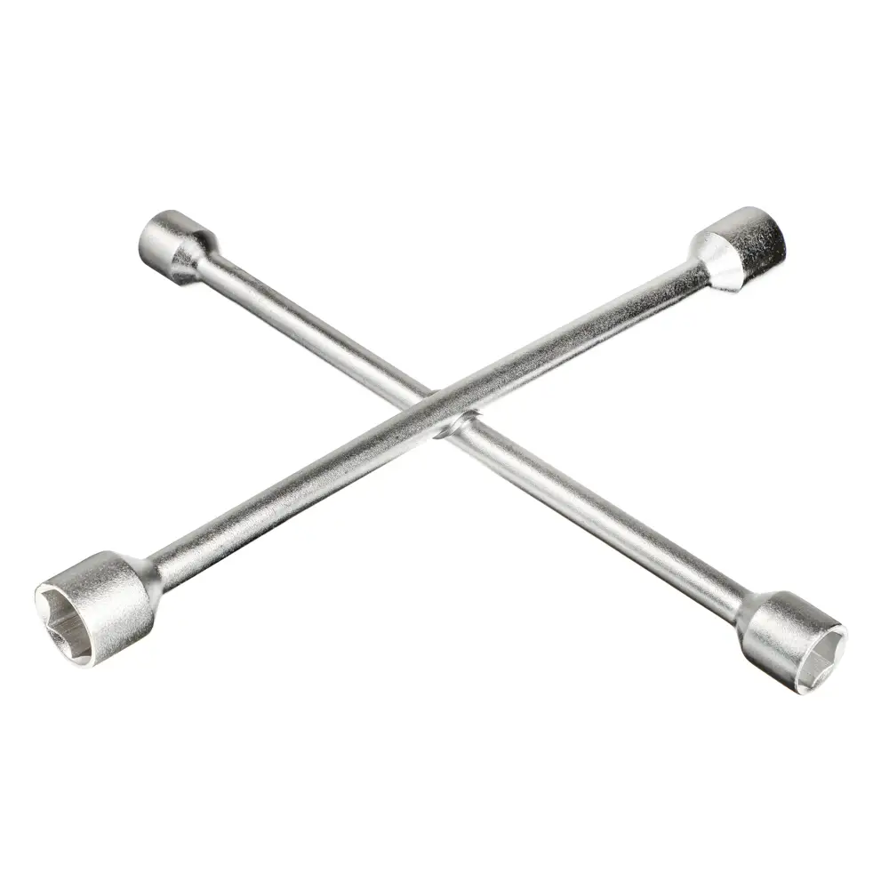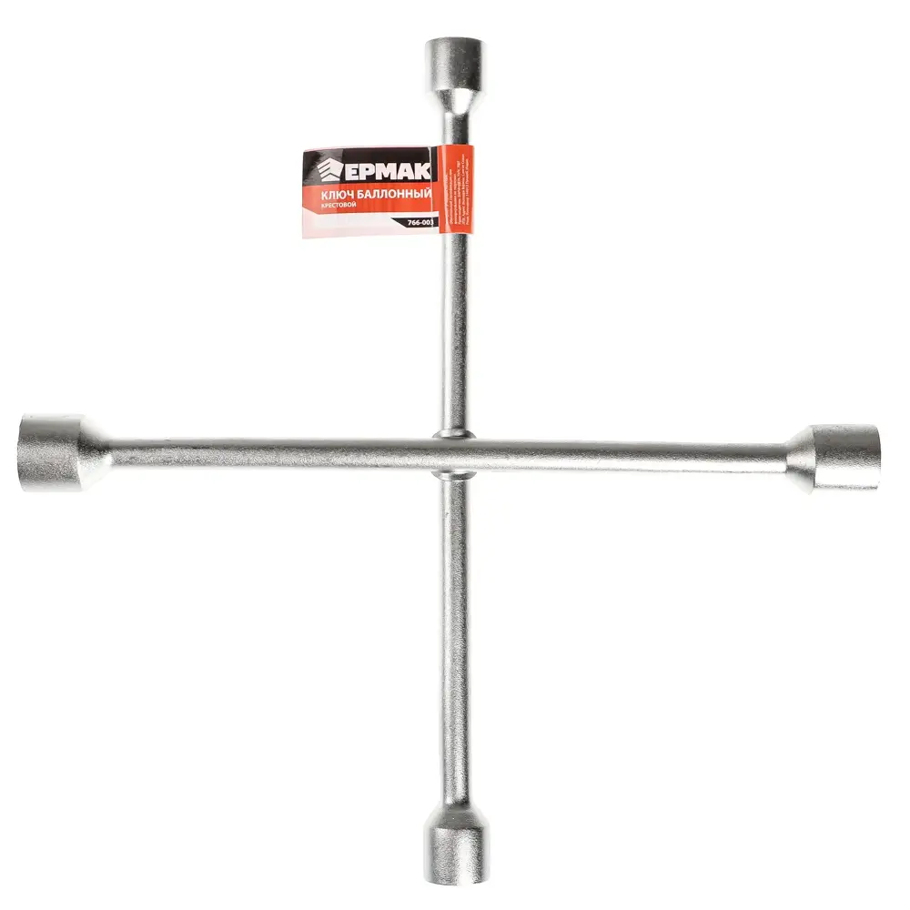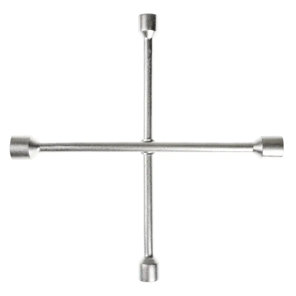 Ключ баллонный крестовой с торцевыми головками предназначен для закручивания и откручивания крепежных элементов во время обслуживания и ремонта автомобильных колес. Прочная стальная конструкция из хромванадиевой стали не боится нагрузок и давления и без труда справится даже с деформированными крепежными деталями. Имеет покрытие от коррозии. Незаменимый инструмент в автомастерской и в гараже.