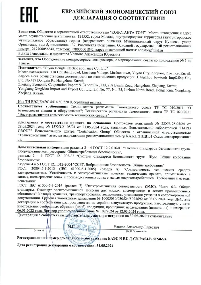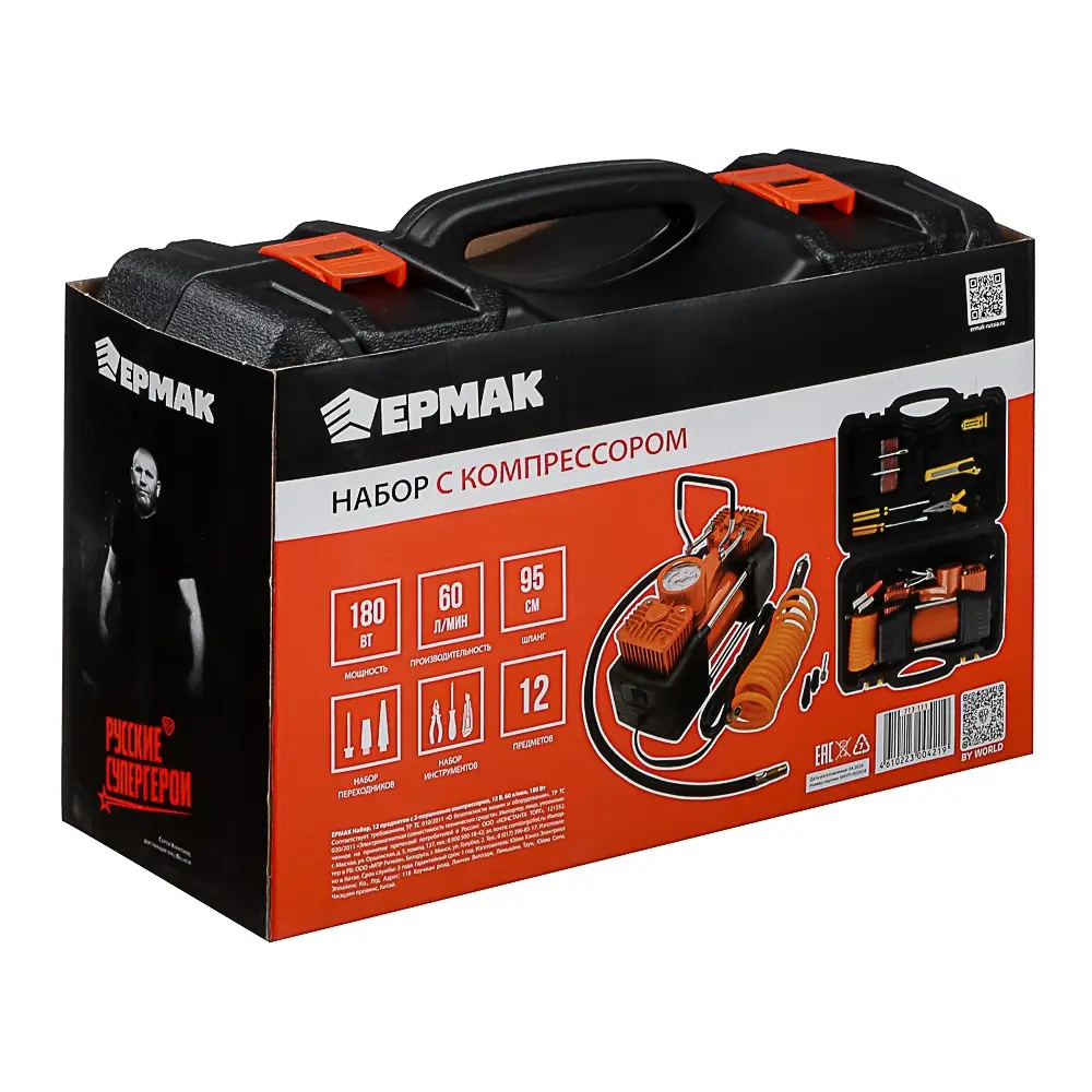 ЕРМАК Набор 12 предметов с 2-х поршневым компрессором 12В, 60л/мин, 180Вт