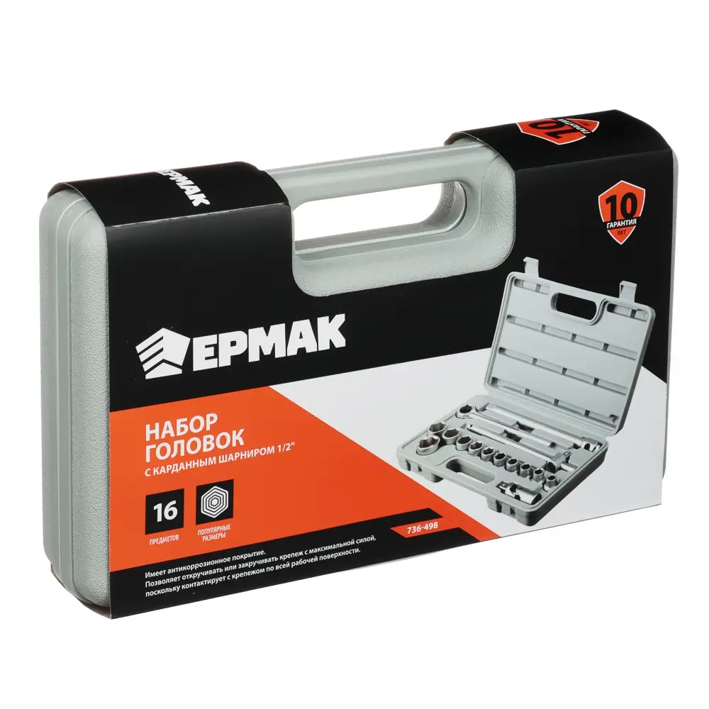 ЕРМАК Набор головок, 16 предм., 10-27мм, с карданным шарниром 1/2"
