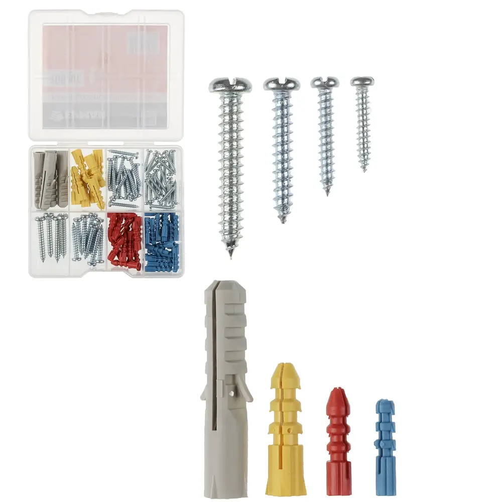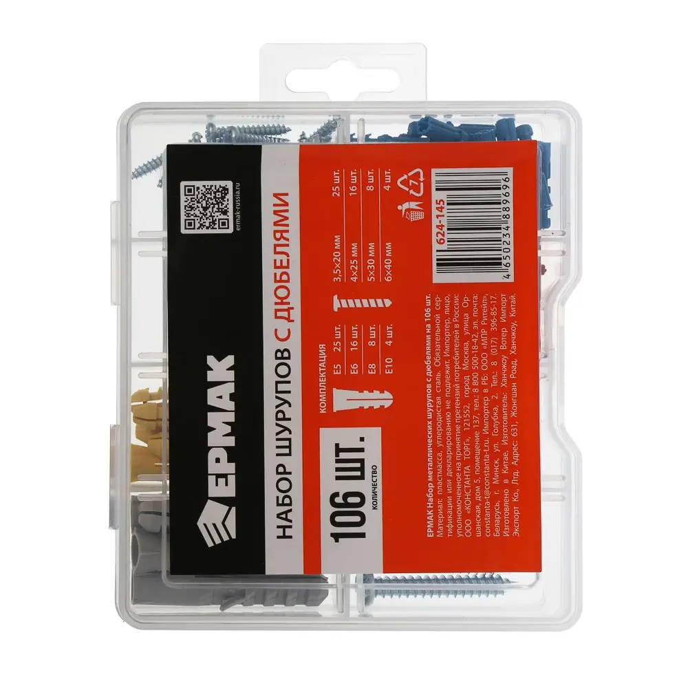 ЕРМАК Набор металлических шурупов с дюбелями на 106шт