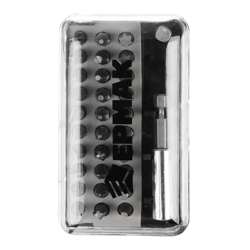 Набор отвертка-адаптер с битами ЕРМАК в стильном компактном кейсе из АБС-пластика состоит из 32 предметов, включая отвертку, адаптер и 30 бит разных типоразмеров: Torx, прямой, шестигранный, крестообразный шлиц. Все элементы выполнены из высококачественной прочной стали, обладают высокой степенью износостойкости и устойчивостью к деформации. Набор пригодится как домашнему мастеру, так и профессионалу. Может использоваться для бытовых работ по ремонту и монтажу, а также понадобится в автомобиле, мастерской или в гараже.