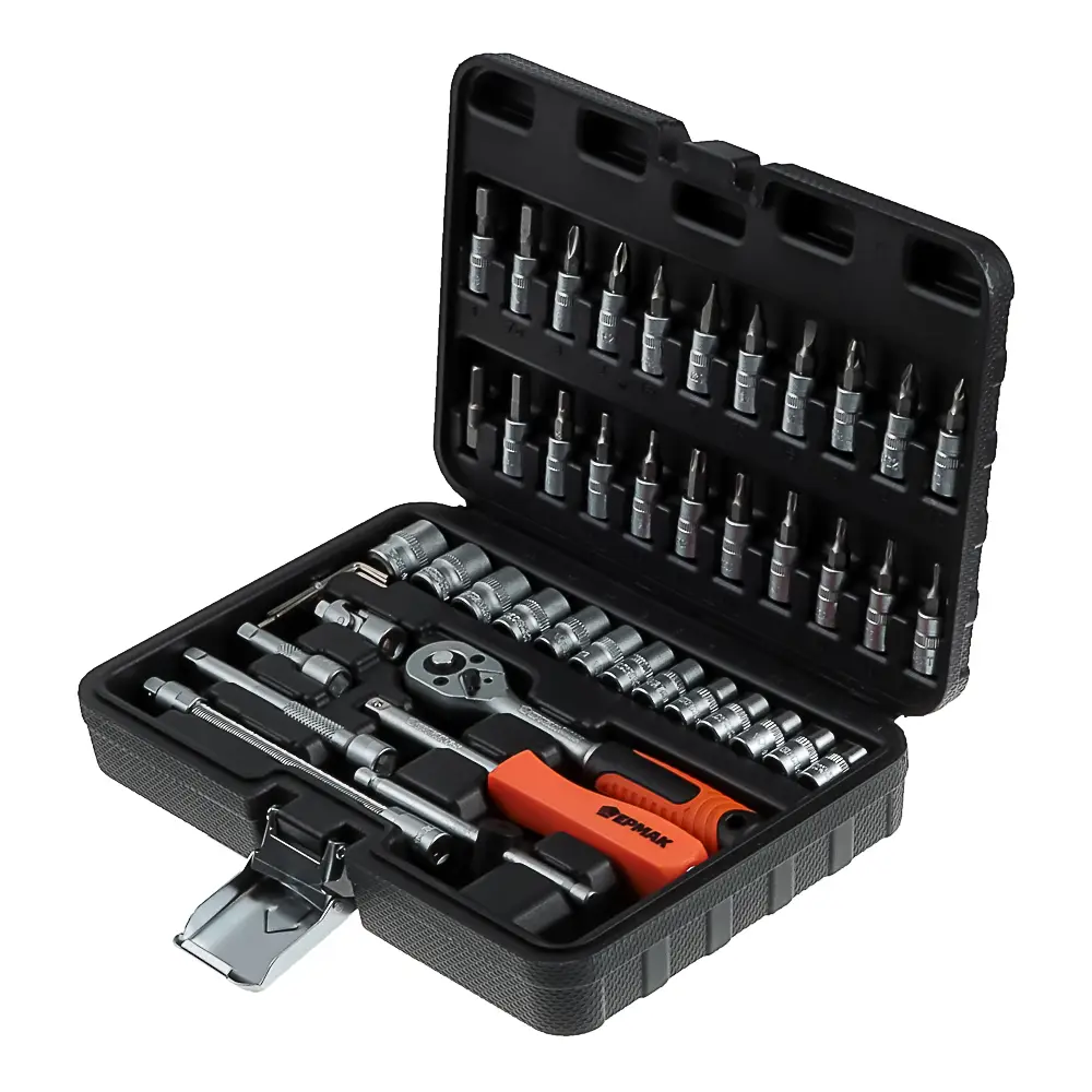 - Торцевые головки 6-гранные 1/4" (13 шт.): 4-4.5-5-5.5-6-7-8-9-10-11-12-13-14 мм; Биты 1/4" (21 шт.): Т10-Т15-Т20-Т25-Т30-Т40, РН1-РН2-РН3, РZ1-РZ2-РZ3, H3-H4-H5-H6-H7-H8, SL4-SL5.5-SL7; Ключи шестигранные (4 шт.): 1.27, 1.5, 2, 2.5 мм
