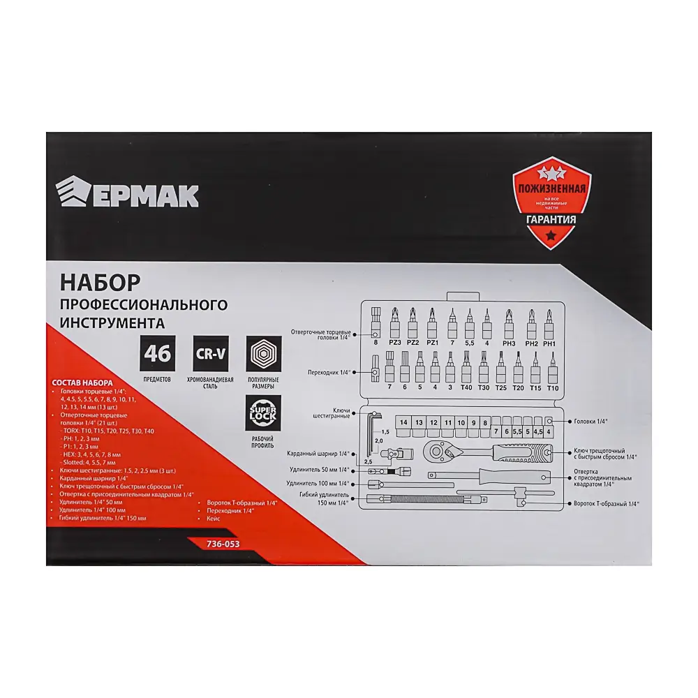 ЕРМАК Набор профессионального инструмента, 46 предм.