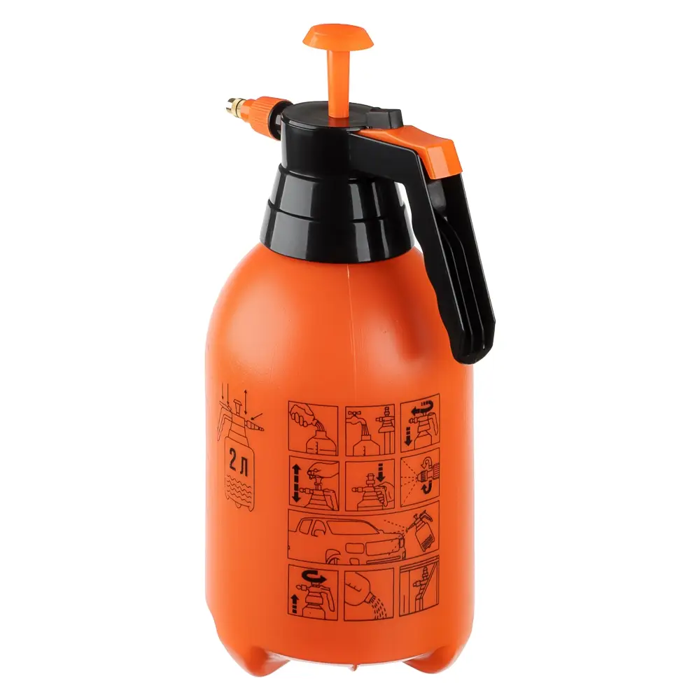 Распылитель-пульверизатор – ручное приспособление объемом 2 л с регулируемой форсункой, которая позволяет менять режим распыления: от узкого до широкого охвата по площади. Незаменим для мойки труднодоступных мест в автомобиле, включая углы и стыки, а также удобен для очистки боковых стекол и стекол заднего вида, передних и задних фар. Емкость может использоваться для нанесения различных составов на кузов автомобиля.