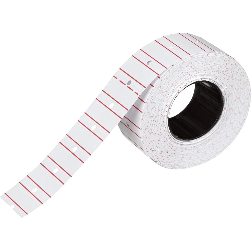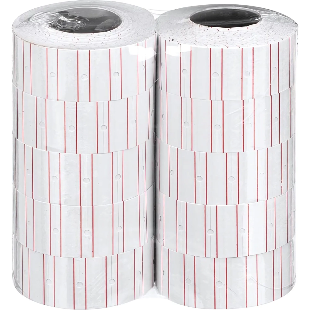 Этикет-лента 21,5х12 прямая белая с красной полосой, 1000шт/рул,10рул/уп