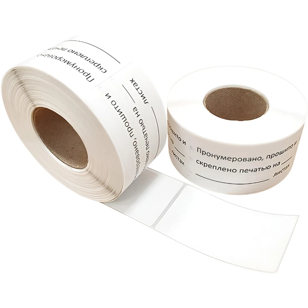 Этикетка для опечатывания Пронумеровано и прошито, 40х74 мм, 500 шт/рул