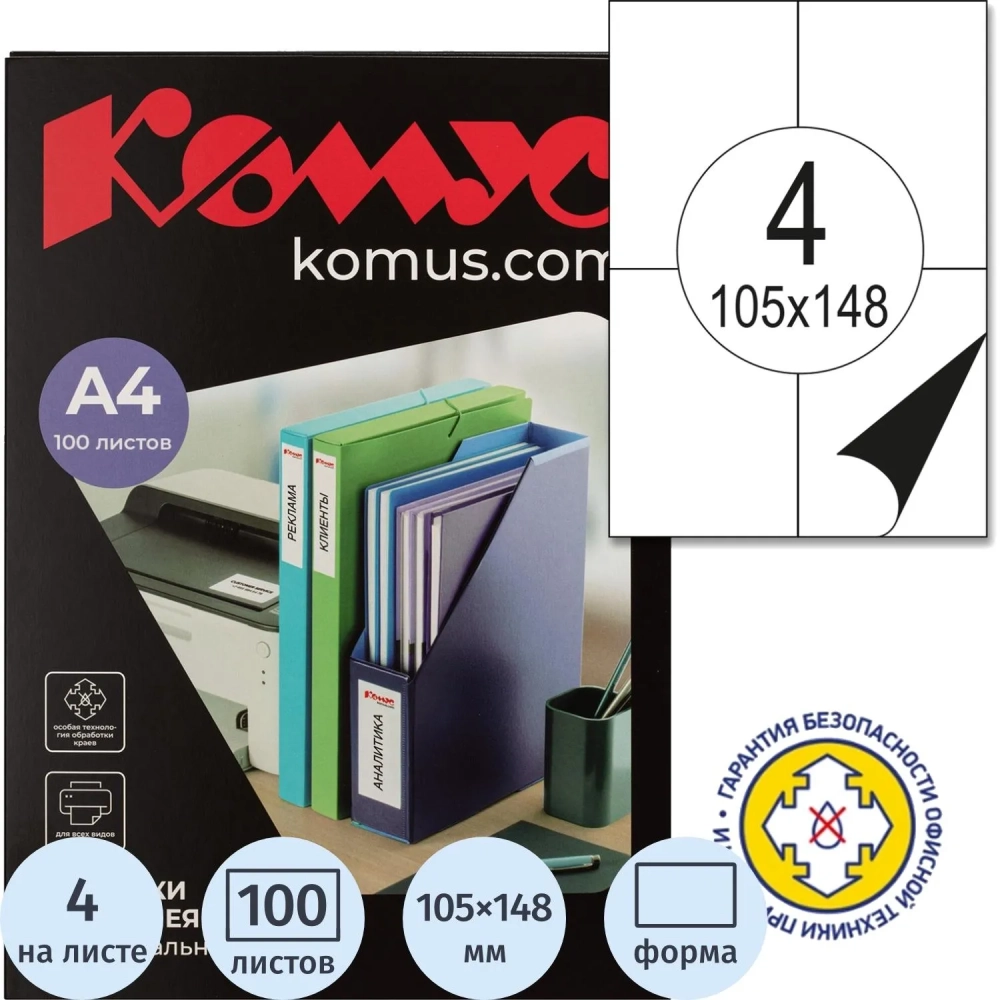 Этикетки самоклеящиеся 105х148 мм/4 шт. на лис.А4 (100 лист